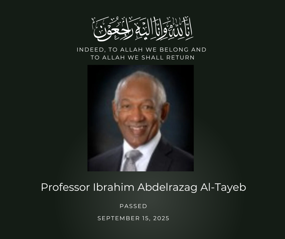With deep sorrow and submission to the will of Allah, we announce the passing of the eminent Professor Ibrahim Abdelrazag Al-Tayeb, who departed to the mercy of Allah yesterday, September 15th 2025  in the United Arab Emirates.